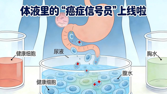 正常情况下,体液里的脱落细胞少且“安分守己”。可一旦细胞发生癌变,就会疯狂脱落,形态、基因都变得异常,就像偷偷发出警报的“侦察兵”。不同癌症的“信使”还会选对“体液通道”:泌尿系统癌症到→尿液里;肺癌到→胸水中;胃癌、卵巢癌→到腹水中;多数癌症到→血液里。