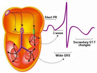 由于这条“小路”速度极快,它会提前激动一部分心室肌(这就是“预激”一词的由来)。随后,从正常通路传来的电信号也会到达,并与“小路”传来的信号混合,共同完成心室的激动。