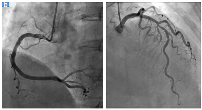 注:图a为冠状CTA图像;图b为冠状DSA图像
