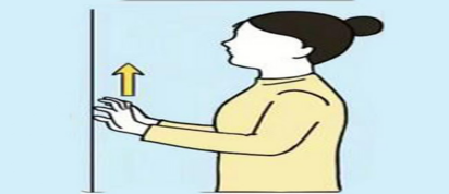 面向或侧向墙壁站立,身体挺直,肩膀自然放松,双手掌心贴墙,手指自然分开抓稳墙面。用手指交替向上缓慢“爬行”,带动手臂和肩关节逐渐上抬,直到肩部有轻微牵拉感时停下保持3-5秒