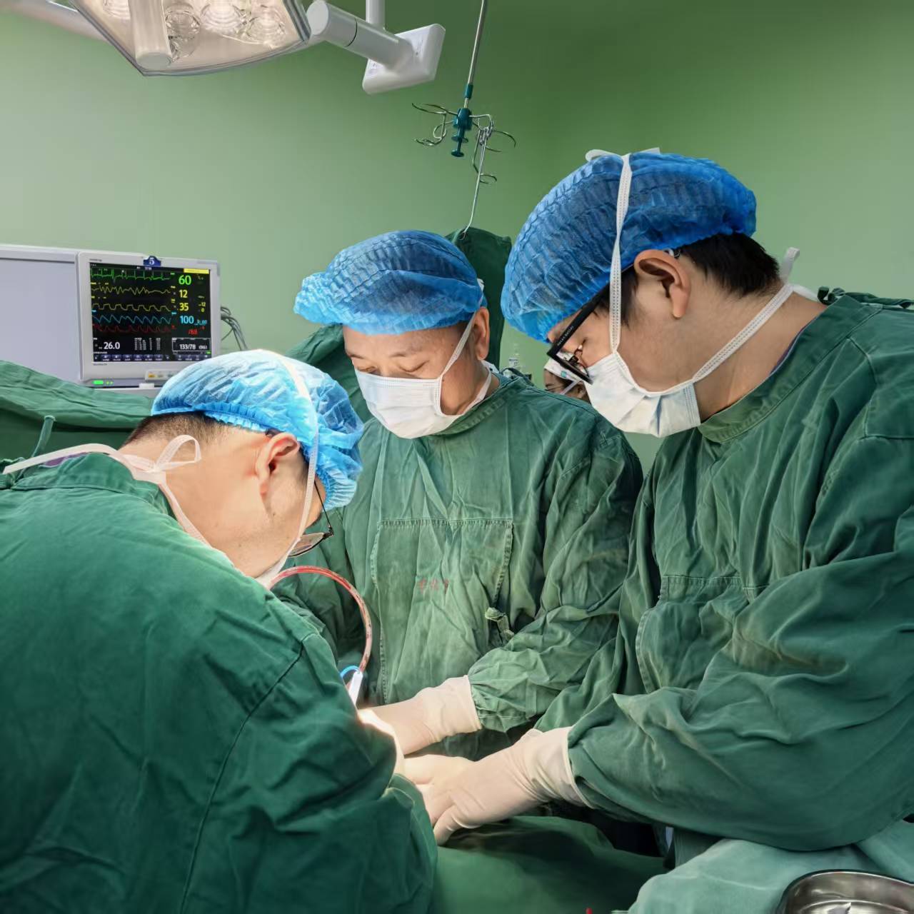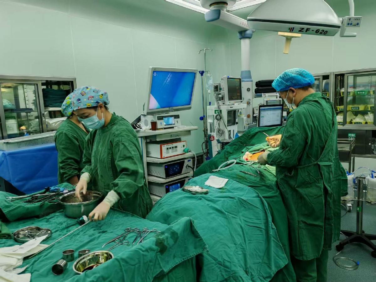 在手术室,骨科主任通过“多发脊柱爆裂性骨折切开复位内固定术”与“UBE下椎间盘切除术”等现场带教,手把手传授微创技术,为当地留下“带不走的技术。”