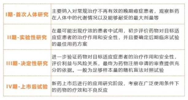 以抗肿瘤药物为例用下图来说明I、II、III、IV期临床试验的目的: