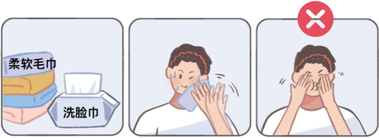 4.使用温水或pH值为4~6的皂液轻柔清洁放射部位皮肤:清洁后用柔软、吸水性强的棉质毛巾蘸干放射部位皮肤。