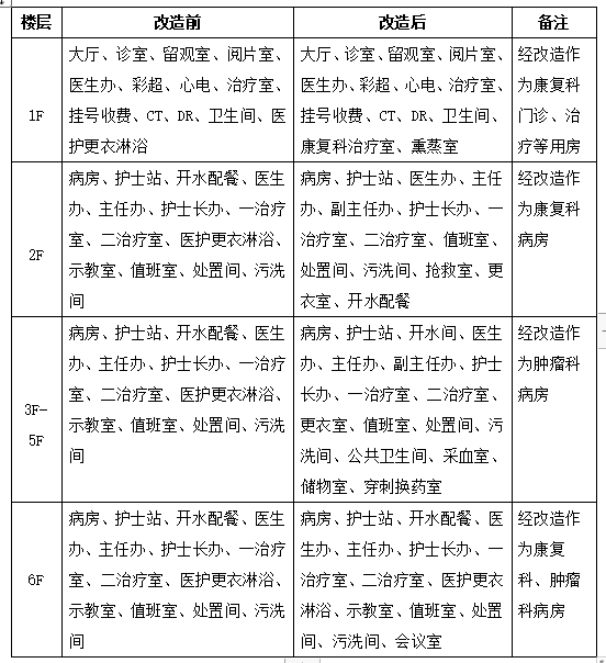 本项目不改变现有肿瘤科、康复科建筑主要特征,仅对肿瘤科、康复科内部部分用房进行改造,合计改造面积约为2346.9平方米。